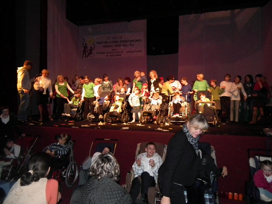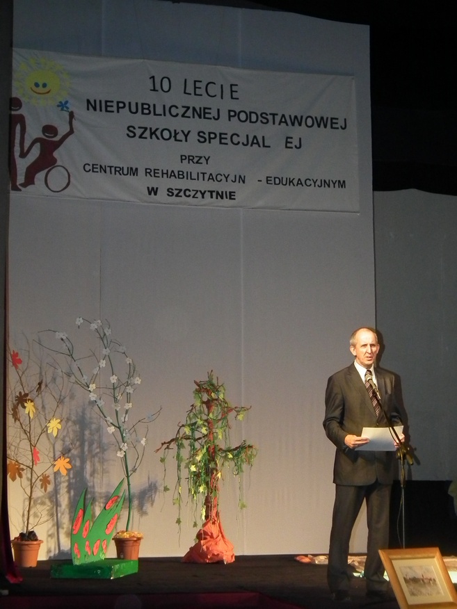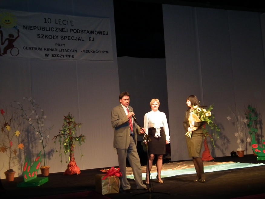 W dniu 21 października 2011 roku nasza szkoła obchodziła swoje 10-lecie, które odbyło się w Miejskim Domu Kultury w Szczytnie. Na uroczystość przybyło mnóstwo gości, pani Dyrektor Mirosława Duńczyk przywitała wszystkich zebranych. Były przemówienia, prezenty, pokaz multimedialny ukazujący pracę naszej placówki oraz przedstawienie „Bajkowy las” w wykonaniu uczniów naszej szkoły, przedszkola „Kraina promyka” oraz chóru ze Szkoły Podstawowej Nr 3. Goście mieli możliwość wpisania się do kart księgi pamiątkowej. Na zakończenie tej doniosłej uroczystości był poczęstunek, którego najważniejszym daniem był ogromny tort z logo naszej szkoły... było naprawdę pysznie:).